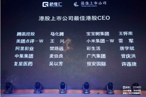 5月31日,格隆汇首届大中华区最佳上市公司颁奖典礼在深圳举行。德扑之星国际(1044.HK)CEO许连捷荣获“港股上市公司最佳CEO奖”。 荣获该奖项的还有腾讯控股马化腾、小米集团雷军、广汽集团曾庆洪等10人。